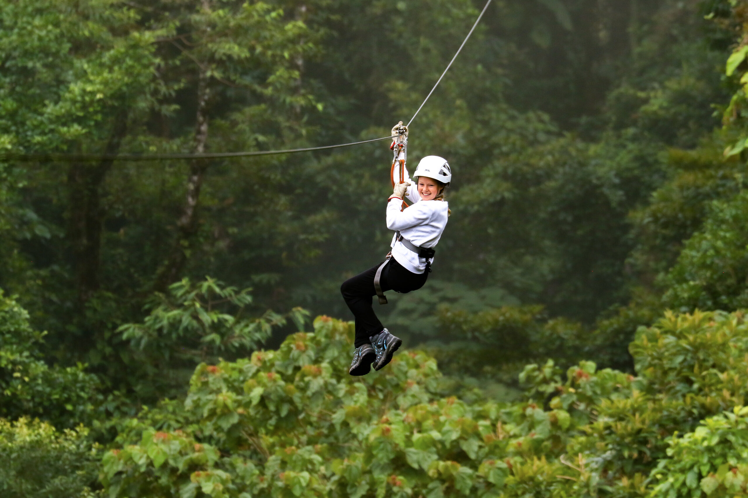 Traslado privado desde Vara Blanca hacia Esterillos Este, descendiendo del bosque nuboso hacia el Pacífico Central. En el camino, aventura de canopy sobre la selva tropical, recorriendo el dosel a través de múltiples cables y plataformas con vistas panorámicas hacia la Bahía Herradura y el Golfo de Nicoya.